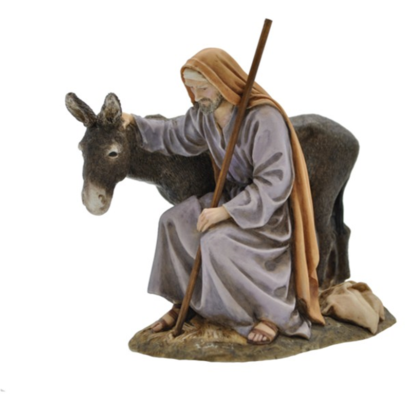 San Giuseppe con Asino è una statuina in resina alta 15 cm, caratterizzata da dettagli accurati e una lavorazione artigianale che la rende ideale per arricchire il presepe. La figura rappresenta San Giuseppe accompagnato da un asino, simbolo di umiltà e lavoro. La colorazione è realizzata con cura per esaltare le espressioni e i particolari della scena. Perfetta per chi desidera aggiungere un tocco di tradizione e devozione al proprio allestimento natalizio.