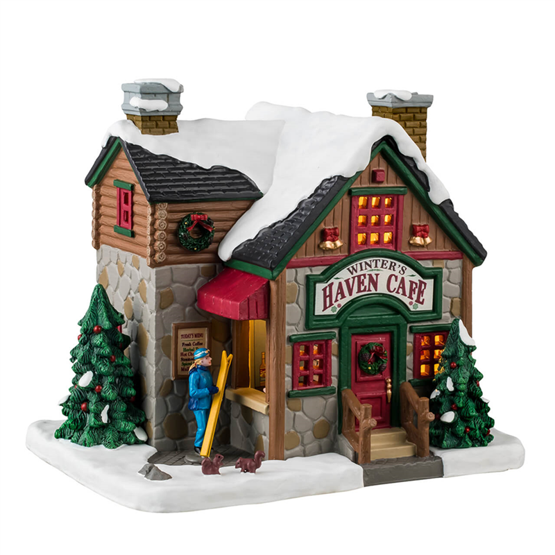 Il F579 Winter's Haven Caf� di Lemax � un affascinante edificio in stile natalizio, caratterizzato da dettagli intricati e colori vivaci. Questo caff� in miniatura � dotato di finestre illuminate che creano un'atmosfera accogliente, perfetta per un villaggio invernale. Decorato con ghirlande festose e insegne incantevoli, il Winter's Haven Caf� invita i visitatori a immaginare un rifugio caldo e invitante, ideale per una pausa dal freddo invernale.