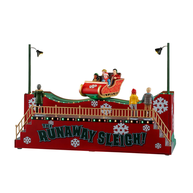 M114 The Runaway Sleigh di Lemax è una scena natalizia in miniatura che raffigura una slitta sfrenata in movimento. La slitta, trainata da renne, è splendidamente dettagliata e cattura l'essenza della magia natalizia con un design vivace e colori festosi. Perfetta per arricchire i villaggi natalizi in miniatura, questa decorazione aggiunge un tocco dinamico e affascinante, evocando l'emozione di una corsa in slitta durante le festività.