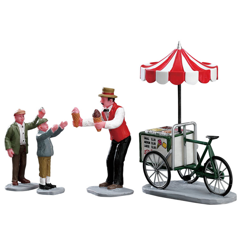 Il set di 4 pezzi "Galato Cart, A2704/2025" di Lemax è una deliziosa aggiunta a qualsiasi villaggio natalizio in miniatura. Questo set include un carrello dei gelati dettagliato, decorato con colori vivaci e dotato di piccoli accessori che ne accentuano l'aspetto realistico. Perfetto per aggiungere un tocco di allegria e gusto al tuo display, il carrello dei gelati è ideale per creare scene vivaci e coinvolgenti nel tuo paesaggio festivo.