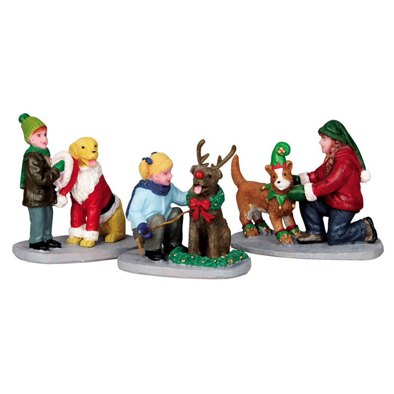 il set "doggie dress up, set of 3 a2395/2024" di lemax include tre figurine raffiguranti cani vestiti in costumi festivi. ogni cane è adornato con dettagli colorati e vivaci, perfetti per aggiungere un tocco di allegria e fantasia al tuo villaggio natalizio o alla tua collezione lemax. queste figurine sono realizzate con attenzione ai dettagli, evidenziando la personalità unica di ciascun cane e il tema festivo.
