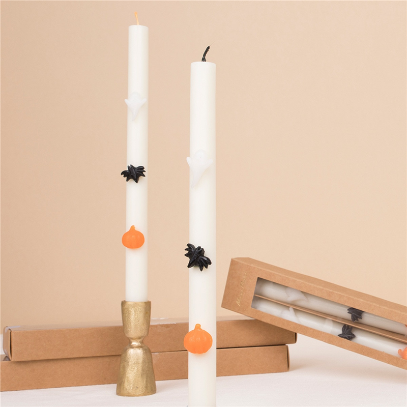 Candela conica di 28 cm, confezione da 2 pezzi, decorata con icone di Halloween, perfetta per creare un'atmosfera festiva e spettrale. Prodotto da Meri Meri.