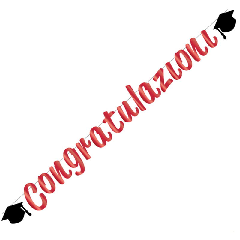 Festone "Congratulazioni" in colore rosso metallico, lunghezza 2,5 metri, prodotto da Givi. Perfetto per celebrare traguardi importanti con un tocco di eleganza e vivacità.