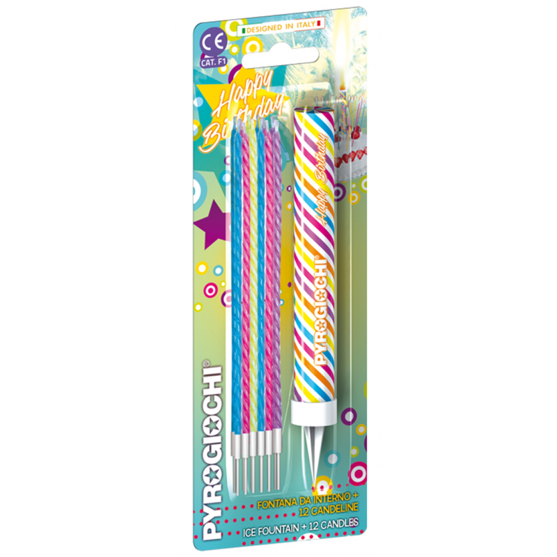 Flamb� Happy Birthday+12 Candeline Multi di Pyrogiochi � un set che include una candela centrale con un effetto pirotecnico spettacolare per celebrare un compleanno in modo unico e festoso. La confezione comprende anche 12 candeline aggiuntive per decorare ulteriormente la torta. Il flamb� crea un'atmosfera divertente e sorprendente, perfetta per rendere speciale il momento del taglio della torta.