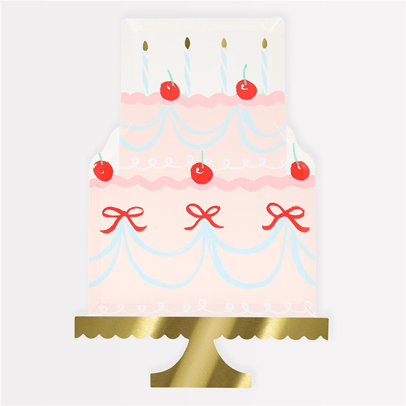 Set di 8 piatti carta sagomati a forma di torta, ideali per feste e compleanni. Design Meri Meri, realizzati con materiali di alta qualità e con dettagli colorati e accattivanti. Perfetti per aggiungere un tocco di originalità alla tua tavola e rendere la tua festa indimenticabile.