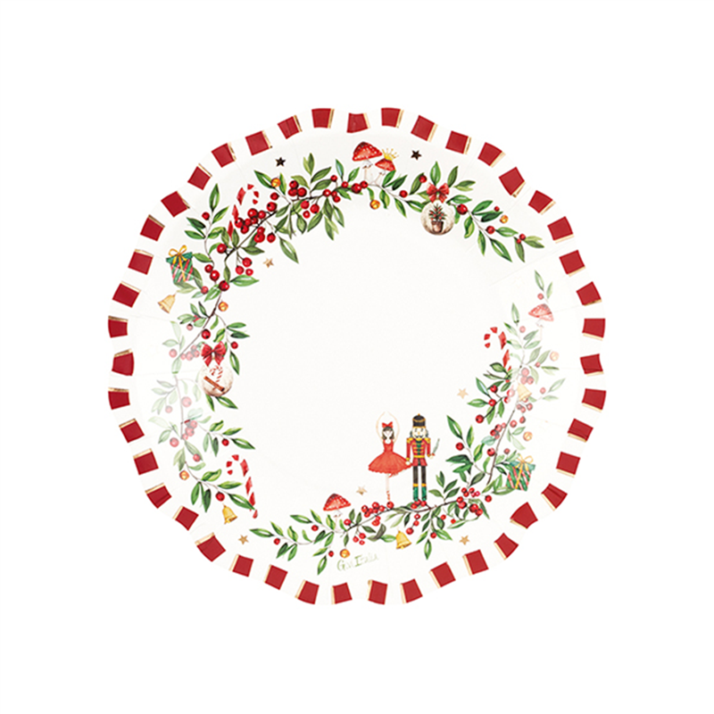 Set di 8 piatti di carta dal diametro di 21 cm, decorati con un design natalizio vintage. Perfetti per aggiungere un tocco festivo alla tua tavola durante le celebrazioni natalizie.