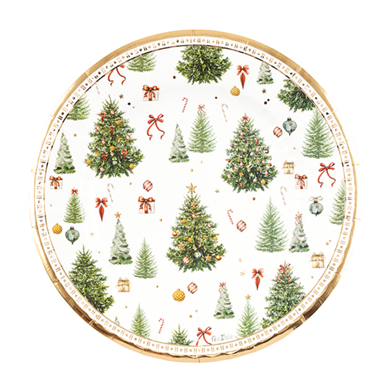 Piatti di carta da 27 cm con decorazioni natalizie a tema foresta, confezione da 8 pezzi. Design elegante e festoso, ideale per arricchire la tavola durante le celebrazioni natalizie. Realizzati con materiali di qualità, aggiungono un tocco di magia alle feste.