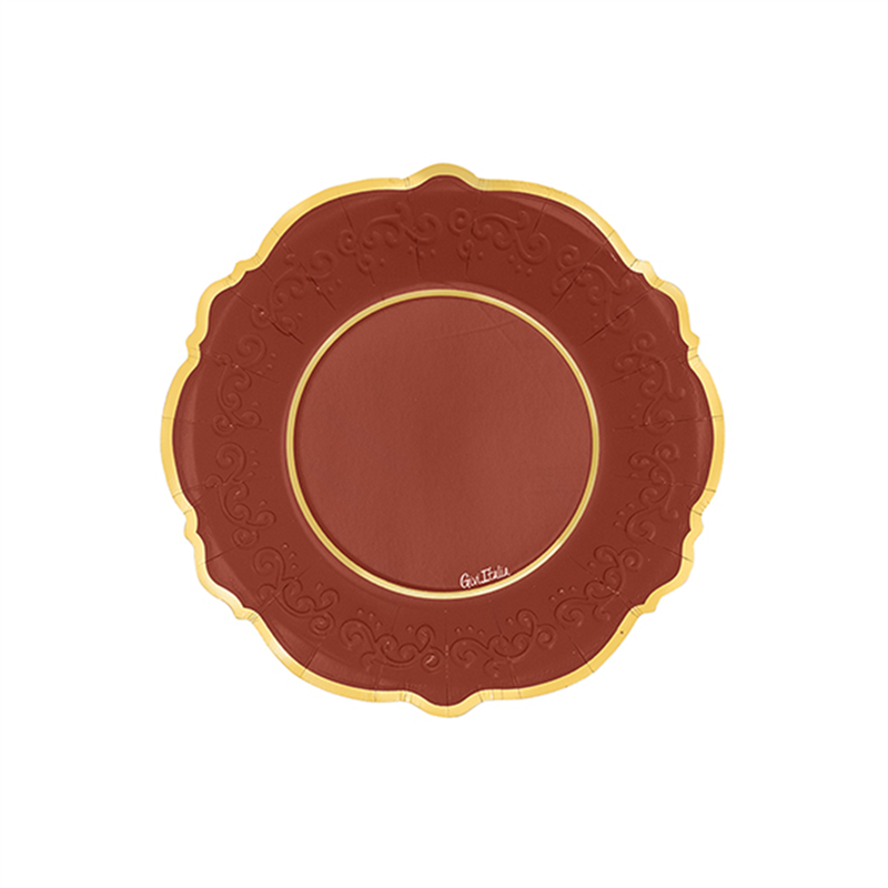 Piatti di carta da 21 cm con design Liberty, bordo oro, confezione da 8 pezzi, colore rosso e oro, marca Givi.
