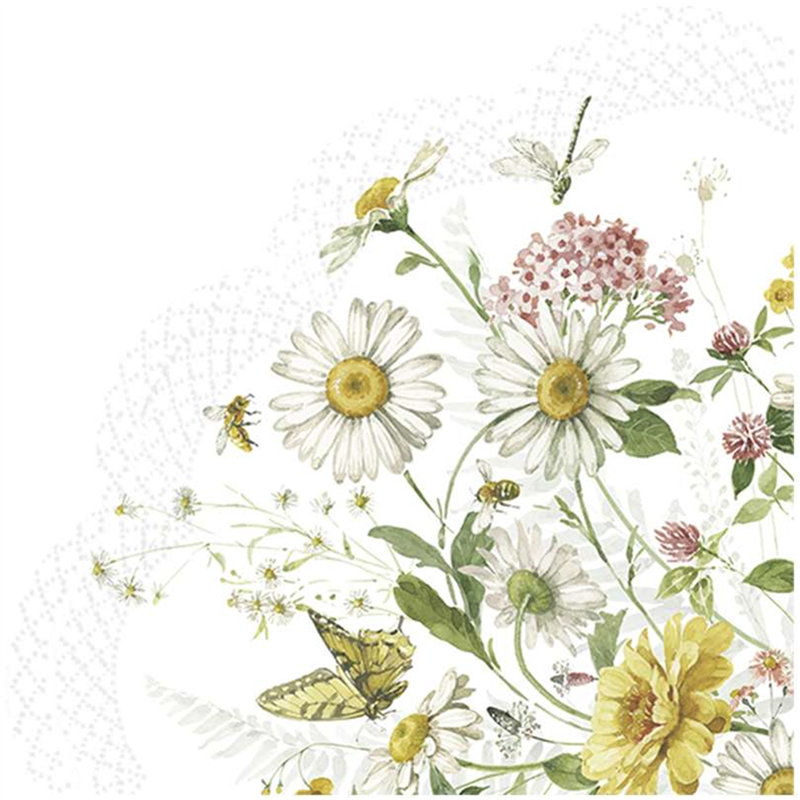 Tovagliolo Carta Tondo 34cm Primavera Wildflower And Butterfly | Ihr