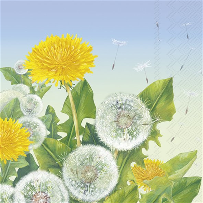 Tovagliolo in carta decorato con motivi primaverili di Dandelion Meadow, dimensioni 33x33 cm. Perfetto per aggiungere un tocco di eleganza e freschezza alla tavola, ideale per occasioni speciali o per un uso quotidiano raffinato.