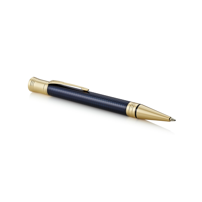 caratteristicheduofold prestige blue chevronemblema della tradizione parker di alta artigianalità dal 1921motivo chevron inciso con vernice blu metallizzata e finiture placcate oro 23 caratimeccanismo a rotazione retrattilepunta a sfera media- inchiostro neropresentata in una lussuosa confezione regalo