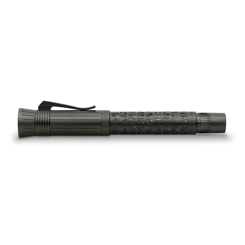 il fusto in metallo della pen of the year 2023 � decorato con splendidi geroglififici (medu netscher): nel metallo rivestitoin carbonio e inciso a diamante sono incisi i nomi di dodici antiche divinit� egizie. i geroglififici sono considerati i pi�antichi caratteri egizi, ce ne sono stati tramandati circa 7.000. per oltre 3.500 anni, i geroglififici sono stati usati principalmenteper scopi rituali o religiosi, ma anche per trasmettere la conoscenza attraverso le generazioni. fu questo il modo in cui l antico egitto riusc� a svilupparsi in una civilt� evoluta e ad amministrare il territorio dello stato. oggi siamo in grado di decifrare questi caratteri ricchi di dettagligrazie al ritrovamento della stele di rosetta nel 1799: l imponente tavola mostra un incisione in tre lingue diverse. durante il viaggio nell antico egitto si incontrano numerose divinit� (alaliha), ciascuna con caratteristiche emansioni specififiche. sul fusto scuro della pen of the year 2023 sono incisi gli elaborati geroglififici di dodici divinit�leggendarie dell antico egitto.