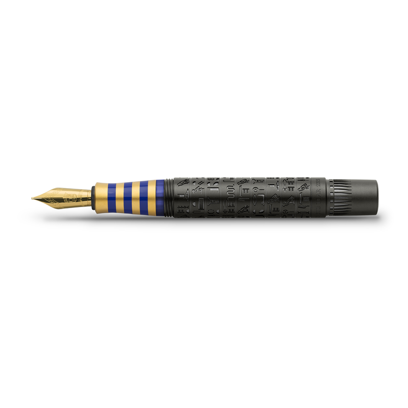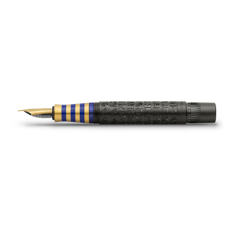 uno dei reperti pi� famosi e impressionanti dell antico egitto pesa ben dodici chili: si tratta della maschera funebre di tutankhamon. l impugnaturadella pen of the year 2023 si ispira alle strisce d oro e di lapislazzuli della riproduzione del copricapo nemes del faraone (da per-aa ).pi� strati di anelli in metallo placcati in oro 24 carati e anelli di lacca blu applicati a mano richiamano il prezioso copricapo riservato ai faraoni.la camera funeraria di tutankhamon, rivestita d oro puro, fu scoperta nel 1922 nella valle dei re e conteneva, tra le altre cose, il suotrono d oro e un carro. essendo una parte importante della religione egiziana, l imbalsamazione e la mummifificazione dei defunti facevanoparte della cerimonia per l accesso all aldil�. l esclusiva edizione antico egitto della pen of the year 2023 (qalam alsana) � limitata a 375 penne stilografifiche e 125 roller. il fusto in metallo opaco conrivestimento in carbonio inciso a diamante ed estremamente resistente � decorato con i geroglififici incisi di dodici divinit� dell antico egitto e con fifiori diloto stilizzati che rappresentano la rinascita. decorano l impugnatura dello strumento di scrittura anelli in metallo con placcatura in oro 24 carati e anellidi lacca blu lucida che ricordano la maschera funebre di tutankhamon. il pennino in oro 18 carati regala un piacere di scrittura esclusivo. una placchettadi metallo con doratura a 24 carati mostra l occhio di horus inciso nel cappuccio terminale un simbolo di protezione nell antico egitto. la forma delcappuccio ricorda il copricapo di nefertiti, una delle pi� importanti e potenti regine egizie. nel terminale del cappuccio � incastonato un lapislazzuli ricostruitocon inciso uno scarabeo portafortuna che simboleggia il sole.