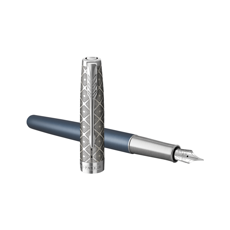caratteristichepenna stilografica sonnet metal & blue lacquer, pennino finela penna stilografica sonnet metal & blue è un'espressione classica di stile raffinato ed eleganza. presenta una vernice blu satinata con clip e finiture in palladio.la penna stilografica presenta un pennino in oro massiccio 18 carati con finitura rodio che offre un'esperienza di scrittura precisa e confortevole.l'attenzione di parker per la qualità superiore è evidente anche nella confezione. la penna stilografica sonnet metal & blue lacquer è racchiusa in una raffinata confezione regalo. presenta i royal warrant sul lato, a testimonianza della tradizione del marchio parker.espressione classica di stile raffinato, la penna stilografica sonnet è il simbolo di eleganza parker.