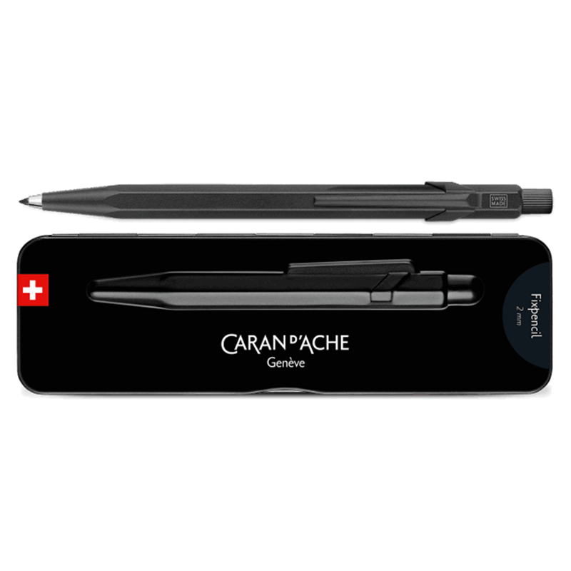 il fix pencil 2mm black code di caran d'ache � una matita portamine elegante e sofisticata, caratterizzata da un corpo nero opaco con finiture di alta qualit�. progettata per precisione e comfort, offre una presa ergonomica e un meccanismo affidabile per un avanzamento fluido della mina da 2mm. perfetta per artisti e professionisti, combina funzionalit� e stile in un design iconico.
