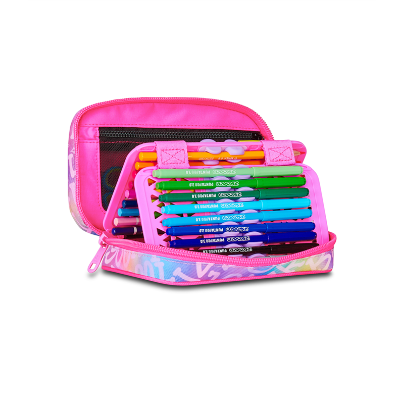 L’astuccio SJ GANG Speed Pad+ lo puoi montare e smontare a tuo piacere ed è interamente lavabile. È dotato di una comoda apertura tramite maxi zip e di plance con un sistema a incastro, senza elastici, per inserire più facilmente penne e matite che troverai nell’apposita bustina. Comodo, pratico e versatile, non ti resta che abbinare il tuo nuovo astuccio a uno zaino o a un trolley Sj Gang per affrontare al meglio la tua giornata di scuola. DIMENSIONI: 14,3 x 20,5 x 7 cm TASCHE: Tasca interna per cancelleria ALTRE CARATTERISTICHE: Apertura singola tramite maxi zip, plance interne amovibili e agganci flessibili in gomma per cancelleria. CONTENUTO 44 PEZZI: 1 penna cancellabile BLU, 1 penna sfera rossa, 18 pastelli a colori 4.0 esagonali, 18 pennarelli superlavabili punta 3.0, 1 matita grafite esagonale HB, 1 colla gialla azzurra, 1 gomma bianca con cartoncino stampato, 1 temperino barilotto 2 fori, 1 righello trasparente azzurro, 1 paio di forbici in metallo con maniglia in plastica TESSUTO: Poliestere