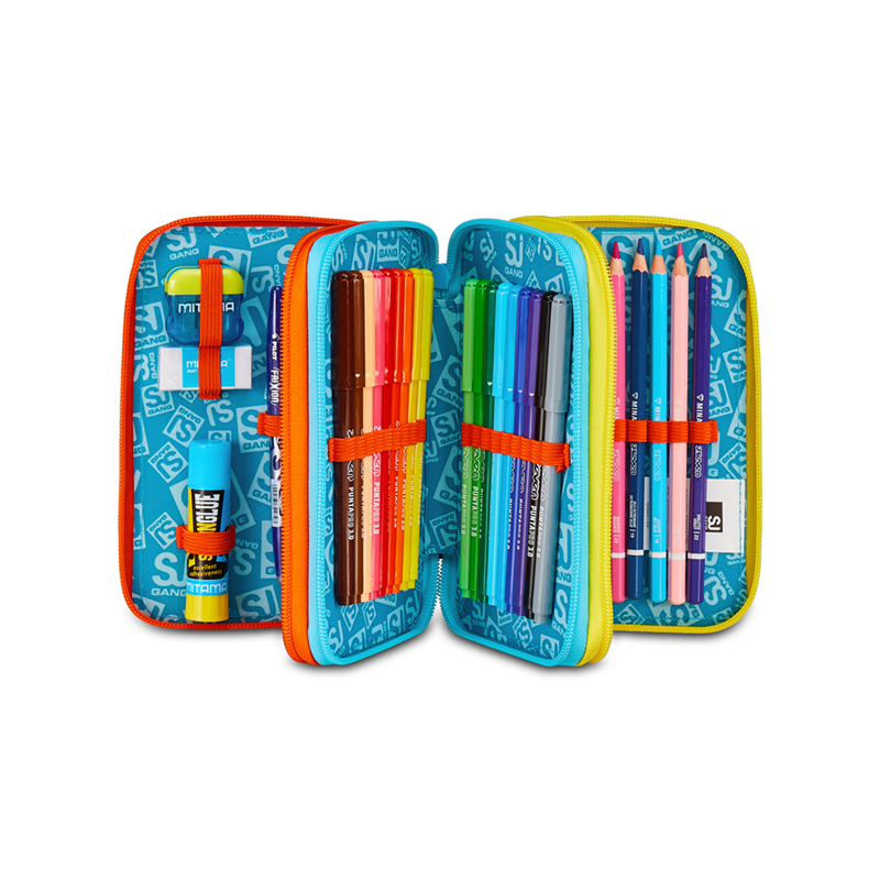 L'Astuccio Triplo Pieno 3 Zip SJ Gang Dragon Glide di Seven è un accessorio colorato e funzionale, caratterizzato da un design accattivante con grafiche di draghi. È dotato di tre scomparti separati con chiusura a zip, offrendo ampio spazio per organizzare penne, matite e altri articoli di cancelleria. Perfetto per la scuola, combina stile e praticità.