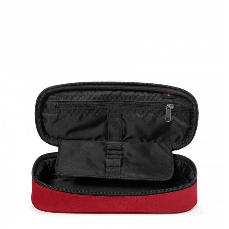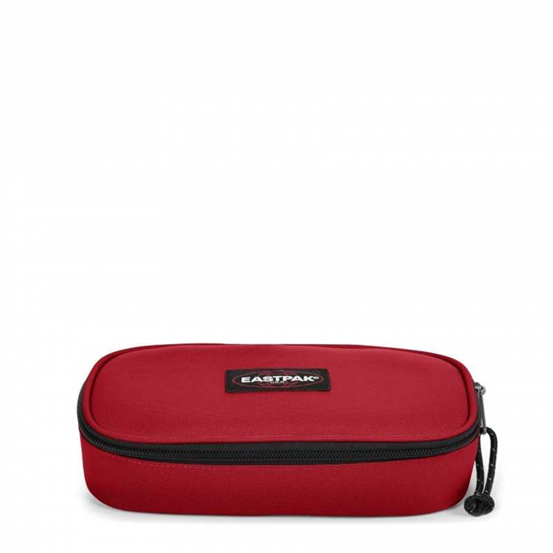Astuccio ovale Eastpak Beet Burgundy: elegante e funzionale, realizzato in tessuto resistente, con chiusura a zip, ampio scomparto principale e tasca interna per una migliore organizzazione di penne e accessori. Design compatto e colore burgundy distintivo.