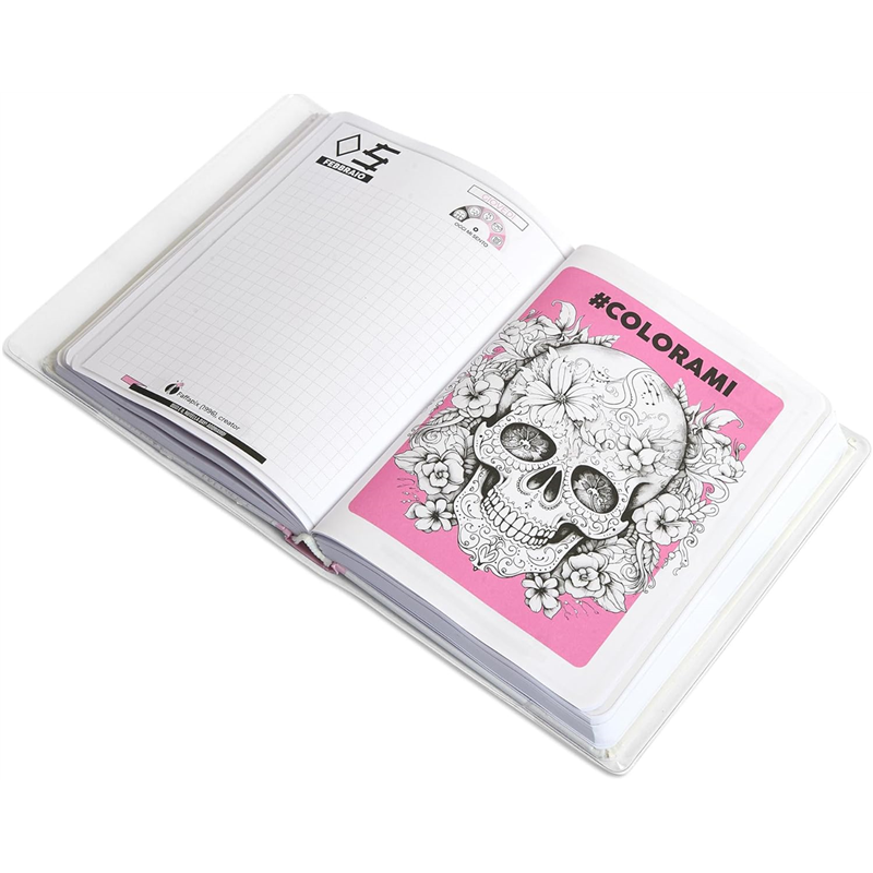 interni - non solo compiti! tra una pagina e l’altra trovi inserti a tema e i tipici giochi di webboh, mandala, spazi da colorare, bigliettini per le verifiche e angoli liberi per scrivere, disegnare o semplicemente essere te stesso. un diario da vivere, non solo da usare.