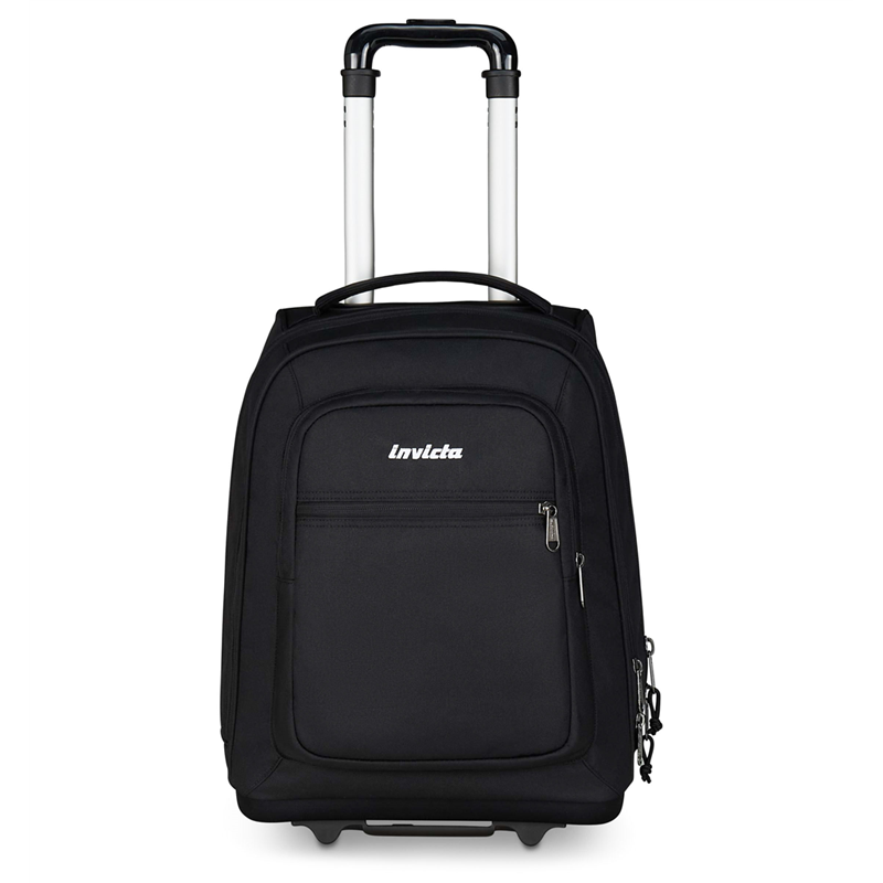 Trolley Bump Invicta è uguale a spazio e praticità. E’ un trolley ma si può indossare come uno zaino grazie agli spallacci a scomparsa. Lo spazio interno è molto ampio e facilmente sfruttabile grazie alle ampie zip di accesso agli scomparti principali: con i suoi 44 litri di capienza offre molteplici possibilità di carico per sia per la scuola che per il viaggio. E’ dotato di scomparto porta laptop fino a 14’ e di una pratica tasca esterna porta borraccia. Ha una doppia barra, ruote da 75 mm, ed è integrato con il nostro sistema brevettato Crossover. E’ realizzato in tessuto poliestere riciclato ricavato dal riutilizzo di 48,5 bottiglie di PET da 500 ml mantenendo gli standard qualitativi dei nostri materiali. DIMENSIONI: 36 x 47 x 18,5 cm CAPACITA: 38 lt SCHIENALE: Imbottito e rivestito in tessuto. SPALLACCI: Imbottiti e rivestiti in tessuto, a scomparsa totale nello schienale. TASCHE: Doppia tasca frontale, tasche laterali porta borraccia, tasca interna con organizer, scomparto interno porta pc 14" (fino a 33x22,6x1,8 cm). ALTRE CARATTERISTICHE: Fondo rigido antiurto con piedino antiribaltamento, doppio scomparto, ruote da 75mm, doppia barra telescopica con doppio scatto, logo Invicta ricamato. TESSUTO: 100% Poliestere riciclato, certificato "GRS"