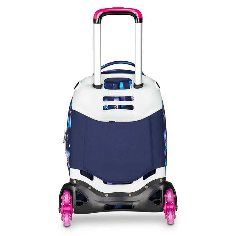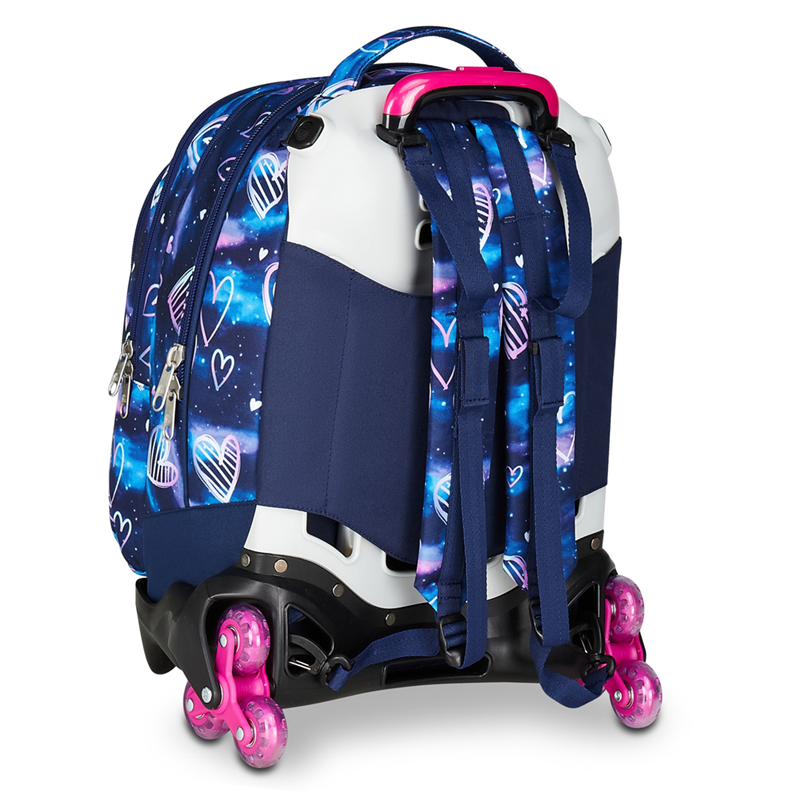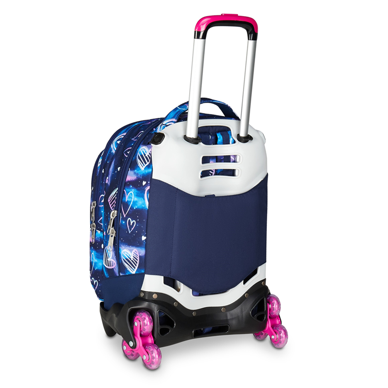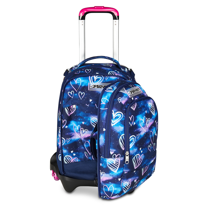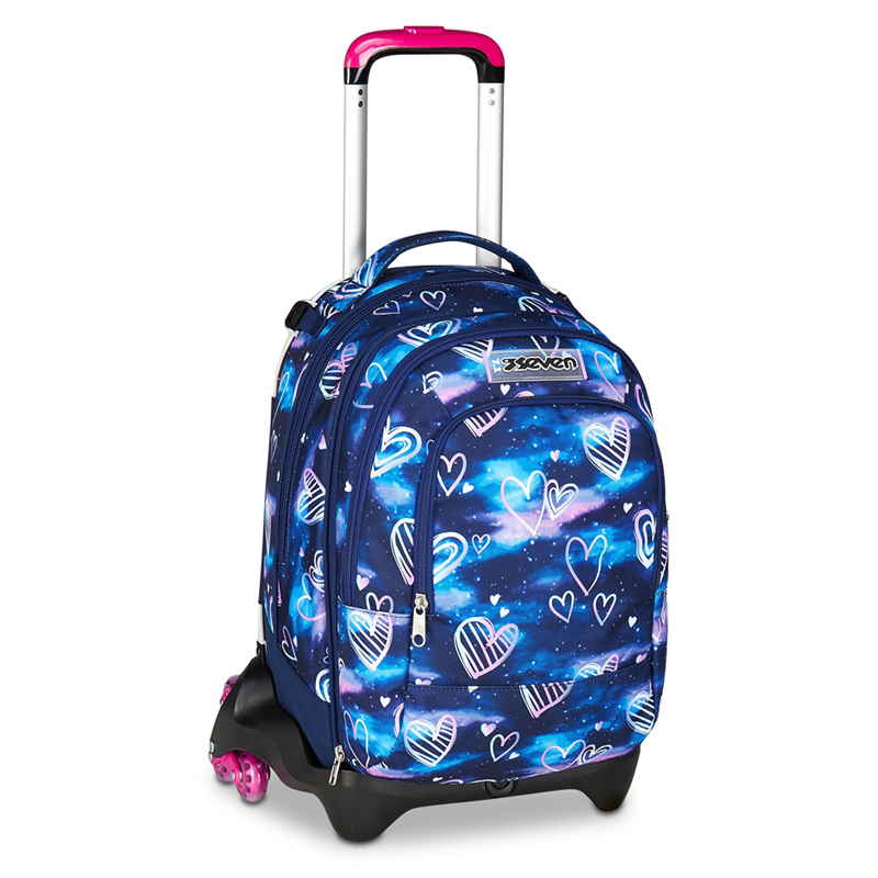 Il Trolley Seven Jack-3WD Detach è uno zaino con carrello sganciabile dotato di sistema a 3 ruote per lato. Lo zaino è capiente, da riempire con quello che ti serve: libri, quaderni per scuola, o il cambio per l allenamento. Lo scomparto frontale, inoltre, si può staccare tramite zip ed essere usato come zainetto. Schienale e spallacci imbottiti inoltre rendono lo zaino comodo da indossare sulle spalle, mentre se lo agganci al carrello dotato di doppia barra telescopica, protezioni angolari e fondo rinforzato è maneggevole, stabile, pratico e sicuro da trascinare come trolley. DIMENSIONI: 40 x 51 x 36 cm CAPACITA: 37 lt SCHIENALE: Imbottito e rivestito in tessuto SPALLACCI: Imbottiti e rivestiti in tessuto, con aggancio per Cross-Over system TASCHE: Tasca frontale staccabile tramite zip che diventa uno zainetto con spallacci in nastro, tasca interna porta borraccia ALTRE CARATTERISTICHE: Trolley scomponibile con sistema a tre ruote, Crossover System con clips per l’aggancio dei nastri, doppia barra telescopica con due regolazioni in altezza, fondo rinforzato e protezioni angolari. 3 possibili utilizzi: 1) uso trolley con spallacci a scomparsa totale nello schienale- 2) uso zaino senza sganciare il carrello- 3) uso zaino quando completamente sganciato dal carrello TESSUTO: Poliestere