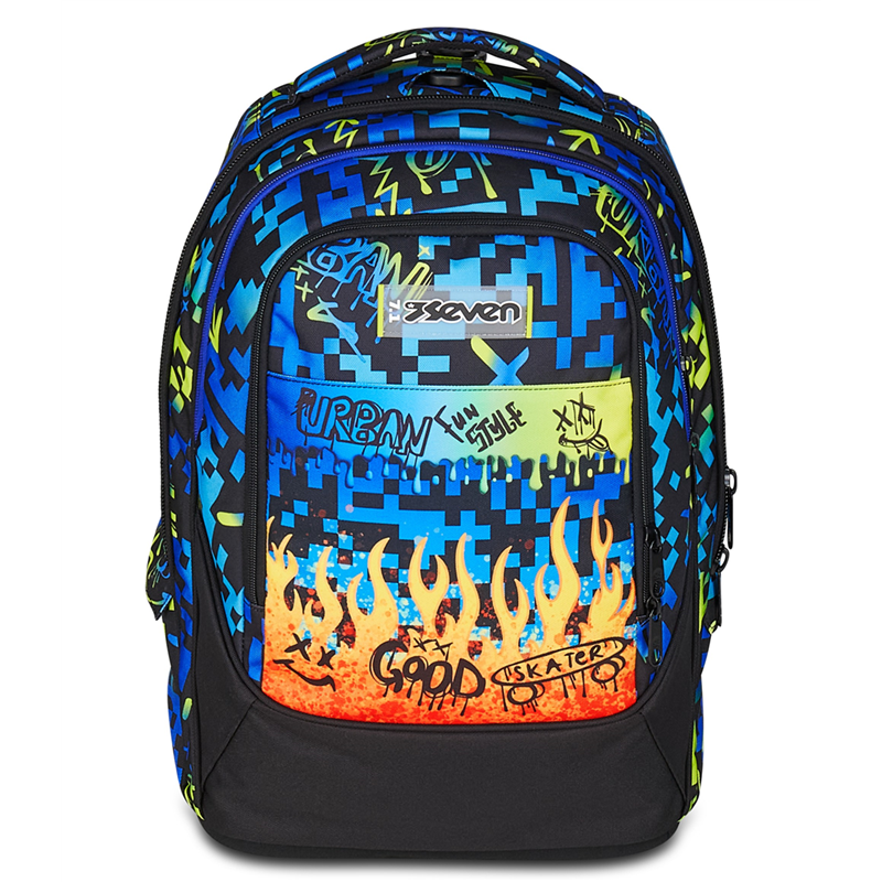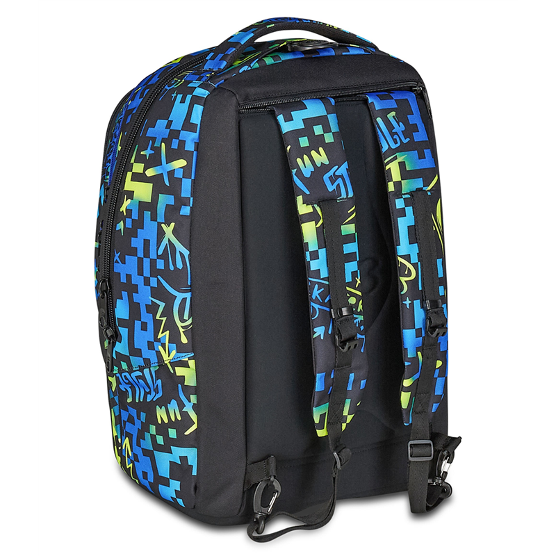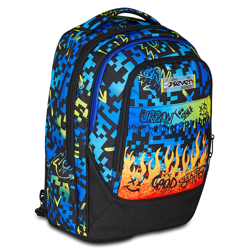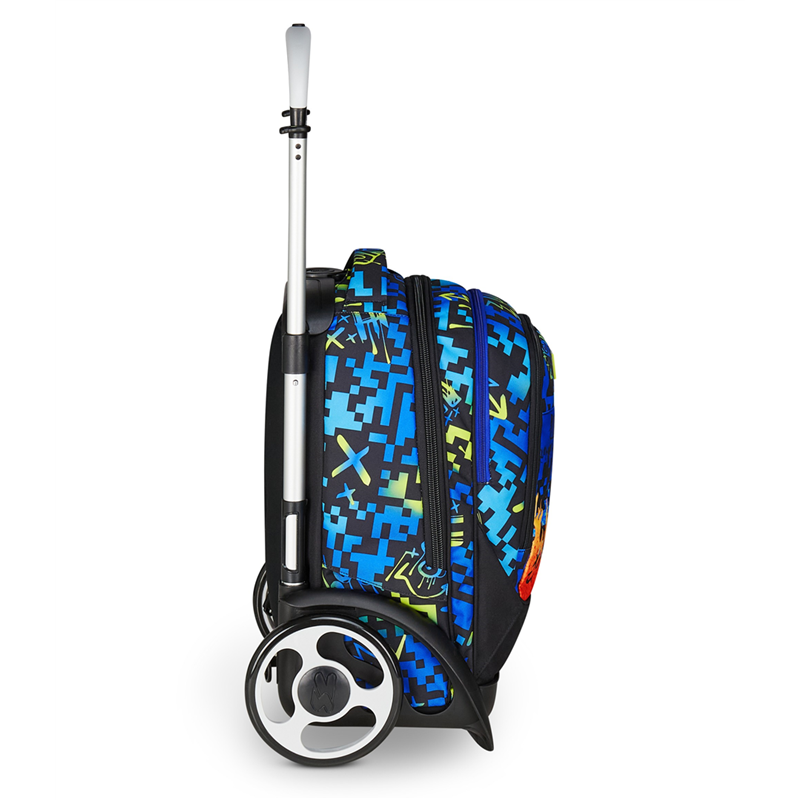 Il Trolley Seven Tyre è uno zaino con carrello sganciabile dotato di maxi ruote da 17 cm. Lo zaino è capiente, da riempire con quello che ti serve: libri, quaderni per scuola, libri e quaderni per scuola, ma anche il necessario per il resto della giornata. Schienale preformato e spallacci imbottiti inoltre rendono lo zaino comodo da indossare sulle spalle, mentre se lo agganci al carrello dotato di doppia barra telescopica, protezioni angolari e fondo rinforzato è maneggevole, stabile, pratico e sicuro da trascinare come trolley. DIMENSIONI: 39 x 57 x 28 cm CAPACITA: 40 lt SCHIENALE: Schienale preformato SPALLACCI: Imbottiti e rivestiti in tessuto, con aggancio per Cross-Over system TASCHE: Tasca frontale ALTRE CARATTERISTICHE: Trolley scomponibile con maxi ruote 17 cm e copriruota, maxi barra, Crossover System con clips per l aggancio dei nastri, doppia barra telescopica con due regolazioni in altezza, fondo rinforzato e protezioni angolari. 3 possibili utilizzi: 1) uso trolley con spallacci a scomparsa totale nello schienale- 2) uso zaino senza sganciare il carrello- 3) uso zaino quando completamente sganciato dal carrello TESSUTO: Poliestere