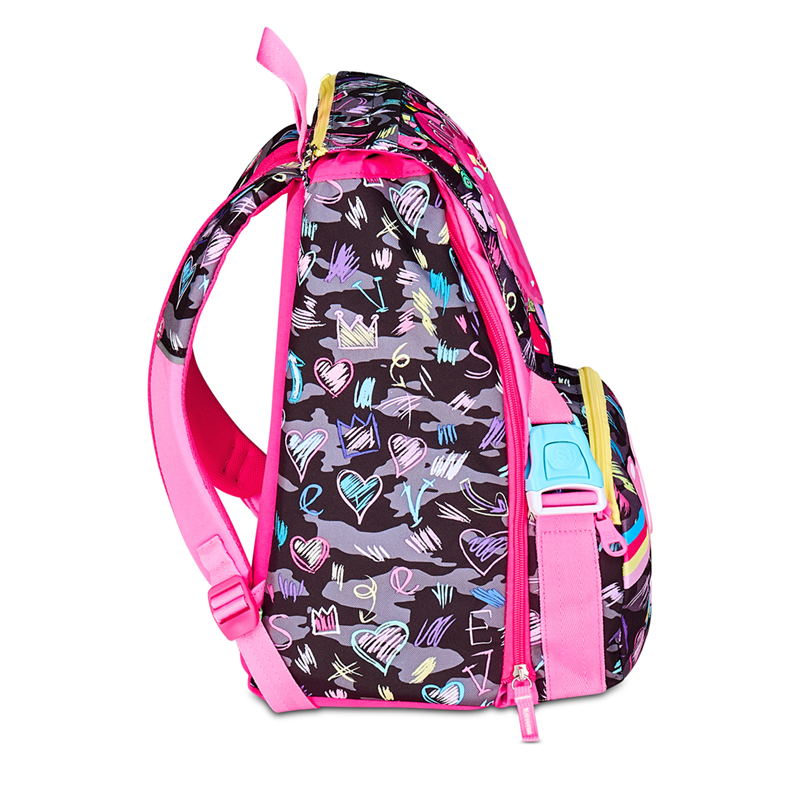 Ciao! Sono GAME-LED GIRL, lo zaino estensibile SJ GANG cui vai a scuola e con cui puoi giocare col LED LUMINOSO posizionato sulla pattina staccabile! Divertiti ad accendere il LED tramite il pulsante on/off, e ricaricalo attraverso l’usb quando vuoi . Ho un doppio scomparto spazioso, di cui puoi aumentare facilmente la capienza tramite le zip laterali per poter accogliere e distribuire in modo ottimale libri, quaderni e tutto ciò che ti serve per la tua giornata, potendo sfruttare anche la tasca frontale. Inoltre, sono davvero comodo da indossare sulle spalle, grazie a schienale e spallacci confortevoli. In più, il fondo integrato mantiene la mia struttura inalterata, garantendo la stabilità del contenuto anche a pieno carico. DIMENSIONI: 27 x 39 x 16 cm CAPACITA: 24 lt SCHIENALE: Preformato con fondo integrato SPALLACCI: Imbottiti rivestiti in tessuto e rete con sagomatura anatomica e inserti rifrangenti TASCHE: Tasca laterale in rete porta borraccia ALTRE CARATTERISTICHE: Zaino estensibile tramite zip laterali, dotato di inserti rifrangenti. Maxi applicazione 3D in gomma, con inserto luminoso ricaricabile con usb. Pattina amovibile. TESSUTO: Poliestere