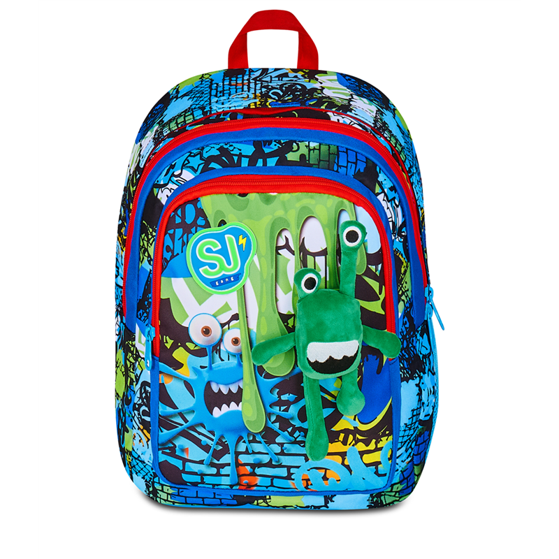 Ciao! Sono il sorprendente zaino Advanced SJ GANG dotato di PELUCHE con OCCHI ALLUNGABILI, pronto ad accompagnarti a scuola in modo divertente e spensierato! Lo schienale e gli spallacci di cui sono dotato mi rendono comodo da indossare sulle spalle, mentre il fondo integrato permette alla mia struttura di rimanere inalterata anche a pieno carico. Nel mio ampio doppio scomparto c’è posto per tutto quello che ti serve durante la giornata e ho anche una tasca laterale dove puoi mettere la tua borraccia. DIMENSIONI: 29,5 x 40 x 24 cm CAPACITA: 29 lt SCHIENALE: Preformato con fondo integrato SPALLACCI: Imbottiti rivestiti in tessuto e rete con sagomatura anatomica e inserti rifrangenti TASCHE: Tasca laterale in rete porta borraccia ALTRE CARATTERISTICHE: Zaino doppio scomparto, tasca laterale in rete portaborraccia, applicazione peluche con giocabilità, occhi e gambe allungabili. TESSUTO: Poliestere