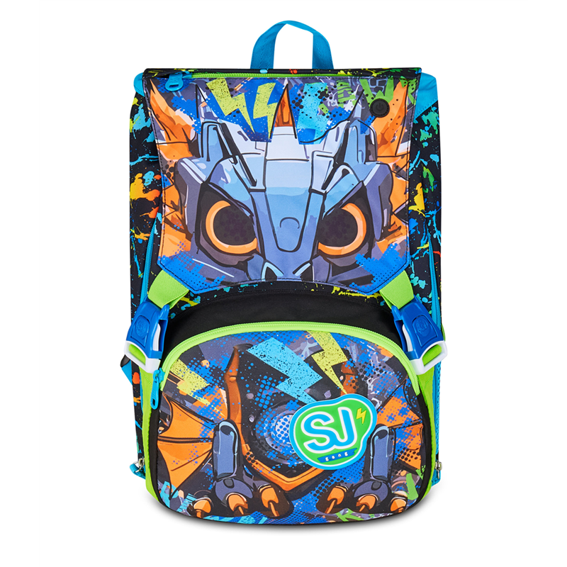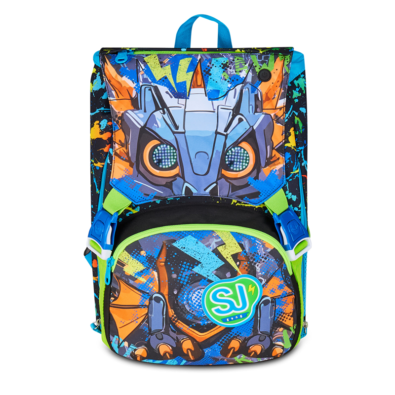 Ciao! Sono LED LOOK, lo zaino estensibile SJ GANG con cui vai a scuola, ma puoi anche giocare. Divertiti ad accendere tutte le volte che vuoi gli OCCHI sulla pattina! Tramite pulsante ON/OFF puoi attivare il dispositivo luminoso con effetto LIGHTING MOVING EYES. Il dispositivo è ricaricabile tramite USB ed è inserito in un pattina staccabile, così lo zaino rimane lavabile. Ho un doppio scomparto spazioso, di cui puoi aumentare facilmente la capienza tramite le zip laterali per poter accogliere e distribuire in modo ottimale libri, quaderni e tutto ciò che ti serve per la tua giornata, potendo sfruttare anche la tasca frontale e la tasca porta borraccia. Inoltre, sono davvero comodo da indossare sulle spalle, grazie a schienale e spallacci confortevoli. In più, il fondo integrato mantiene la mia struttura inalterata, garantendo la stabilità del contenuto anche a pieno carico.Schienale: Preformato con fondo integrato. Capacità: 24 lt. Dimensioni: 27 x 39 x 16 cm.Altre caratteristiche: Zaino estensibile tramite zip laterali, dispositivo luminoso su pattina, effetto 'lighting moving eyes' attivabile tramite pulsanteon/off sulla pattina e sistema ricaricabile tramite usb.Pattina staccabile tramite zip che permette il lavaggio dello zaino.Tasche: Tasca frontale, tasca laterale in rete porta borracciaSpallacci: Imbottiti rivestiti in tessuto e rete, con sagomatura anatomica e inserti rifrangentiTessuto: PoliestereGaranzia: 4 anni