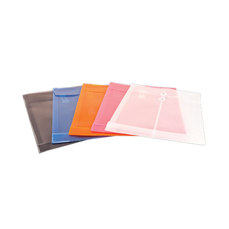 busta a soffietto in polipropilene trasparente colorato. dotata di efficace sistema di chiusura a cordino, garantisce una grande capacit� di contenuto. colori assortiti: blu, trasparente, arancione, rosa, grigio. formato a4.