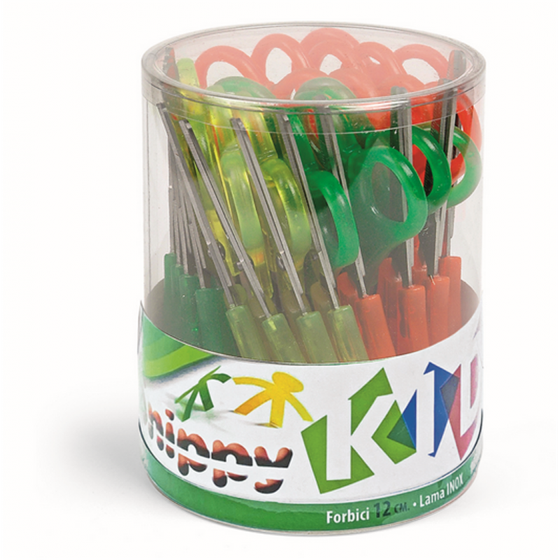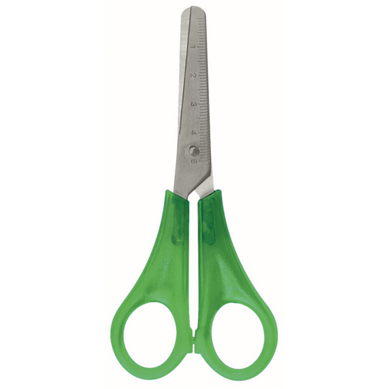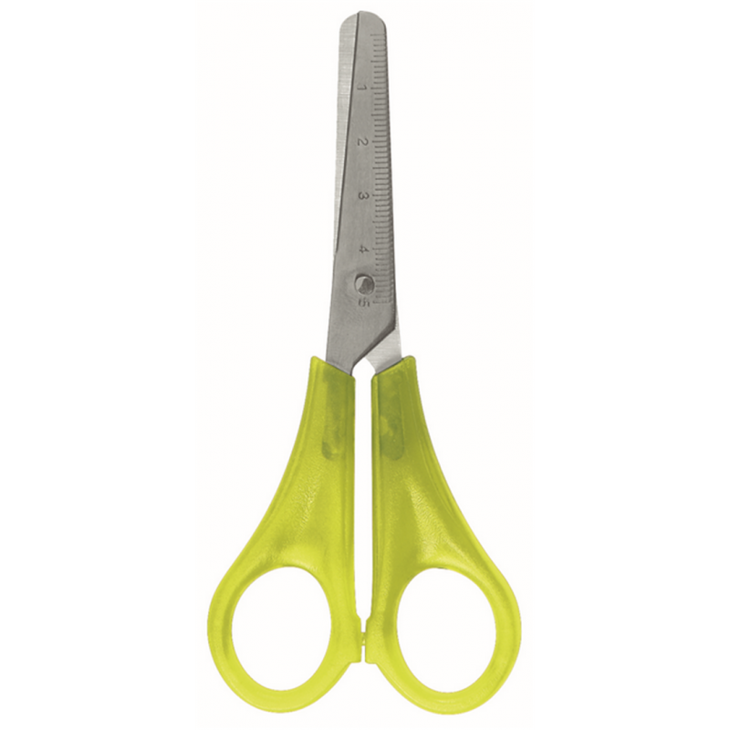 forbici centimetrate per mancini, lama in acciaio inox e punta arrotondata. impugnatura in plastica colorata.