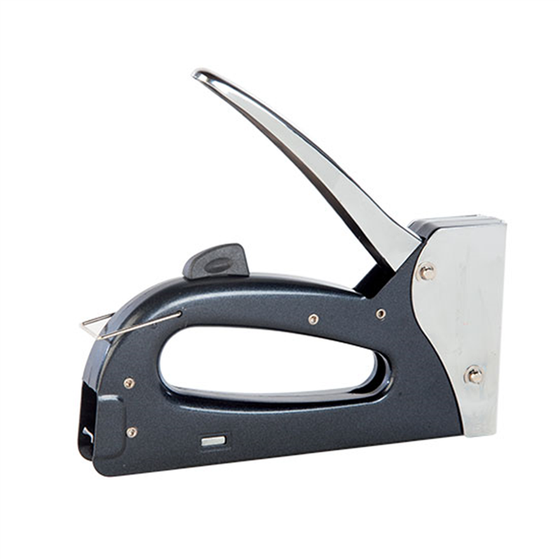 fissatrice in metallo, potente ed ergonomica con 3 categorie di punti montabili. sistema di riduzione del contraccolpo, adatta per fi ssare tele, pelle, cartone e tessuti. monta punti n. 23/8-10 – 53/4-10 – 13/4-10. inclusi nella confezione n.100 punti 13/8.