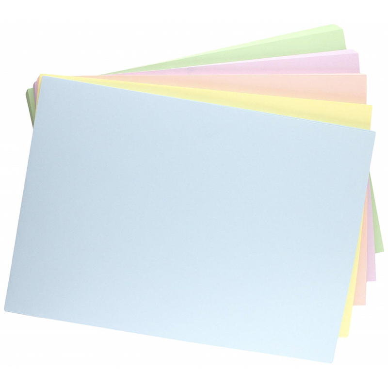 risma composta da 5 colori tenui: rosa, giallo chiaro, celeste, verde chiaro, lilla.
