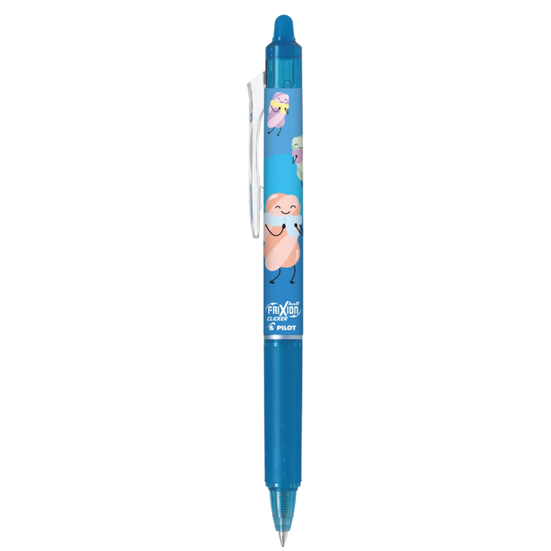 La Sfera Frixion Clicker Sweet Paradise con fusto azzurro della Pilot è una penna cancellabile con inchiostro termosensibile, dotata di un meccanismo a scatto per un utilizzo pratico e veloce. Il design è ispirato al tema "Sweet Paradise", caratterizzato da un look vivace e accattivante. La penna offre una scrittura scorrevole e confortevole, ideale per l'uso quotidiano su diversi tipi di carta. Il fusto azzurro aggiunge un tocco di colore e personalità, mentre la gomma integrata sulla parte superiore permette di correggere gli errori facilmente.