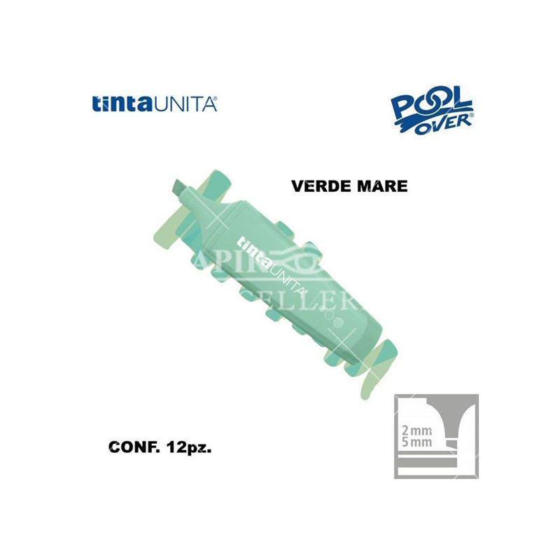 Mini evidenziatore in tinta unita color Verde Mare, parte della Palette 19. Design compatto e pratico, perfetto per evidenziare testi con un tocco di freschezza e originalità.